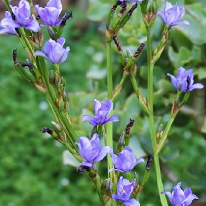 Blue Stars are striking perennial plants from the Iris family, with clumps of strap-like leaves and spikes of attractive blue flowers in July and August. The flowers are held on strong stems up to 1m tall sitting above a base of leaves about 50cm tall. These are good border plants for milder gardens and good pot plants. Pollinators are attracted to the open single flowers.