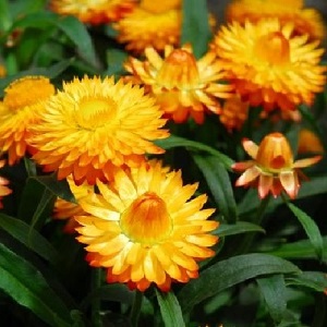 A golden yellow Everlasting with double flowers from July to the first frost. Plants have grey-green leaves and grow to about 90cm in height. The flowers are beautiful in the border and are excellent cut and dried flowers. They last indefinitely as dried flowers.