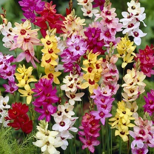 A mix of African Corn Lilies with graceful and attractive star-shaped flowers in June and July. Plants have grass-like leaves, grow to a height of 35-50cm and hold their flower spikes on wiry stems. They grow well in borders and containers.