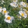 A lovely Tree Poppy with large white crepe-paper flowers in July to September